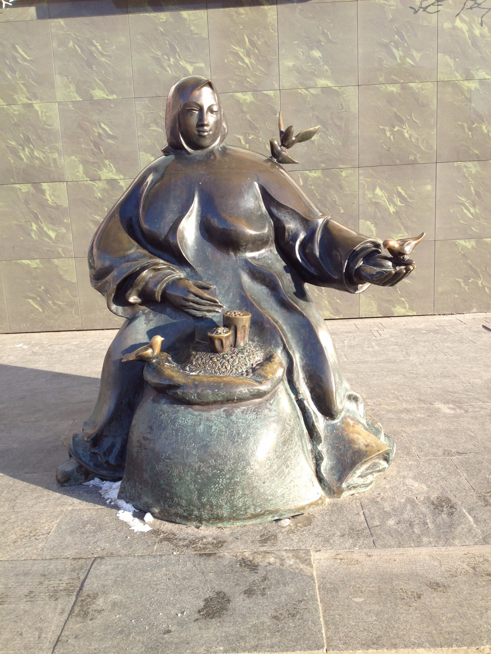 На входе в Комаровский рынок сидит торговка семечками. Добрая женщина, если обратите внимание! Воробьев вот угощает!