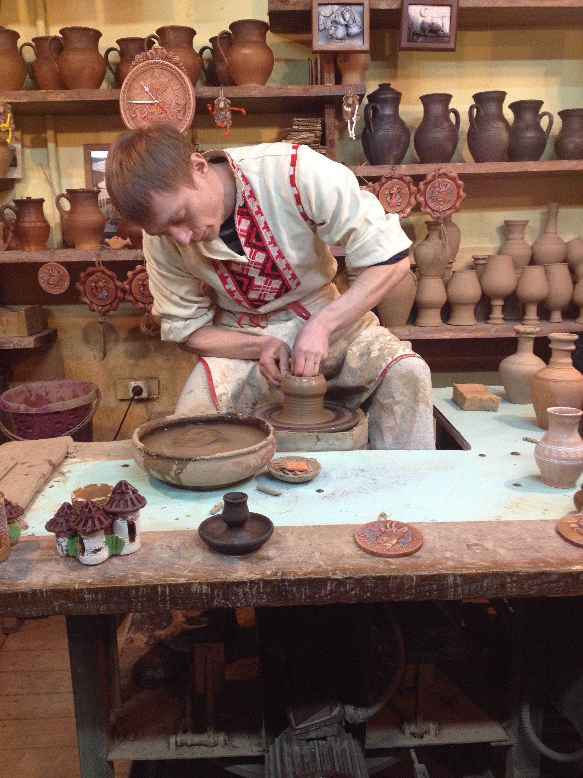 Гончар в Дудутках. Скоро получится горшочек. а можно самому сделать свистульку!